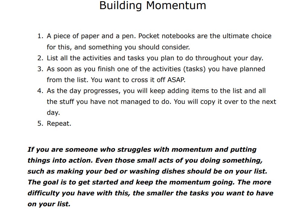 Learn how to chase momentum and use it for effortless execution (best described in the Mindset workbook)